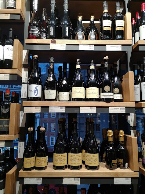 The third image reveals meticulously arranged shelves boasting an impressive selection of wines and spirits. Each bottle tells a story of vineyards, sun-drenched hills, and the age-old art of Italian winemaking. The selection ranges from everyday table wines to those special bottles reserved for celebratory toasts, ensuring that there is a perfect pairing for every dish and occasion.
