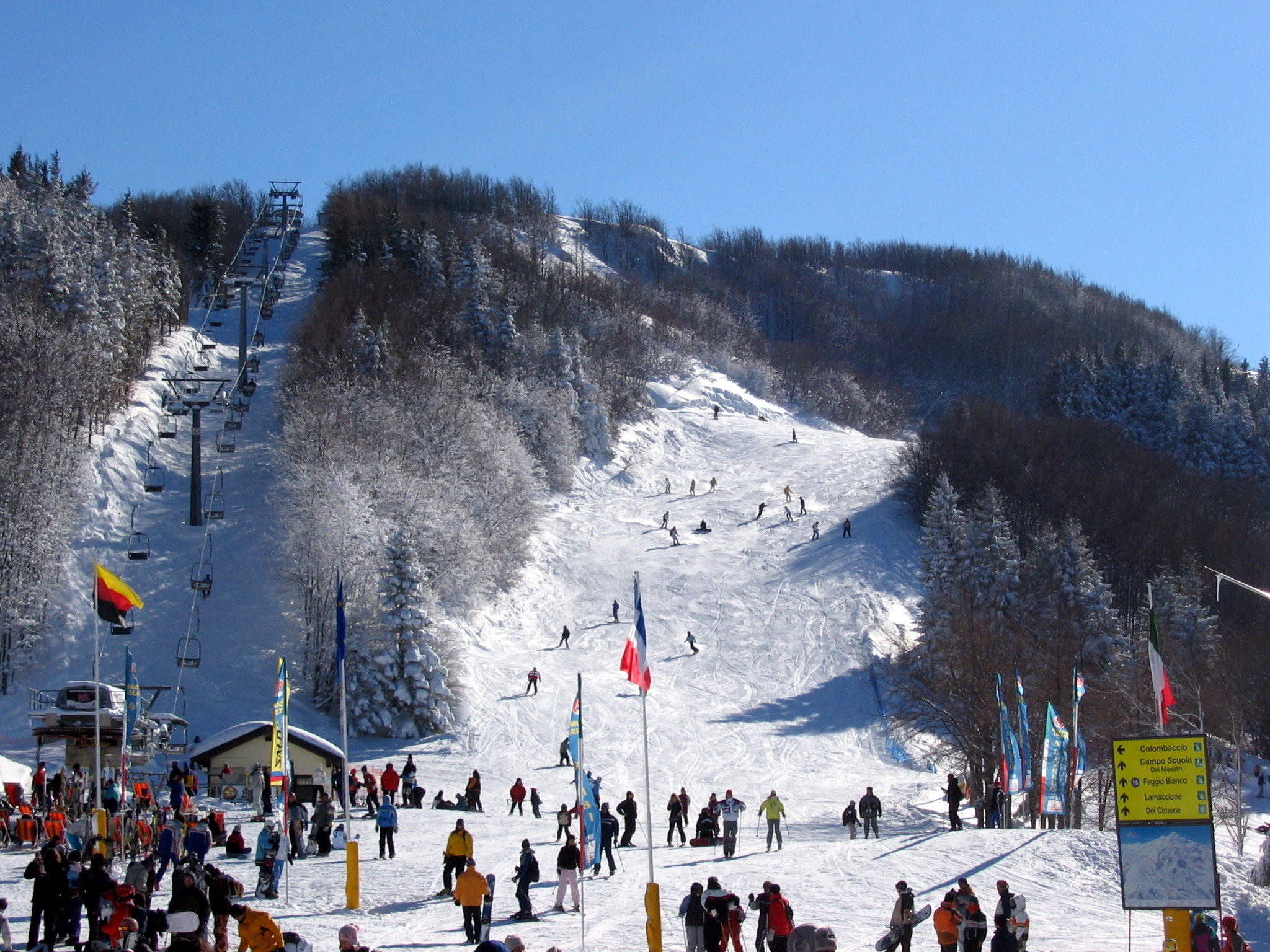 Mount Cimone has 31 ski trails that amount to a total length of more than 50 km. The longest trail of Cimone is 3.6 km long. The season for skiers usually starts in the first week of December and continues until the middle of April. The ski resort is divided in six areas which are called Passo del Lupo, Polle, Cimoncino, Lago della Ninfa, Montecreto and Pian del Falco. All the areas are linked with trails and lifts.