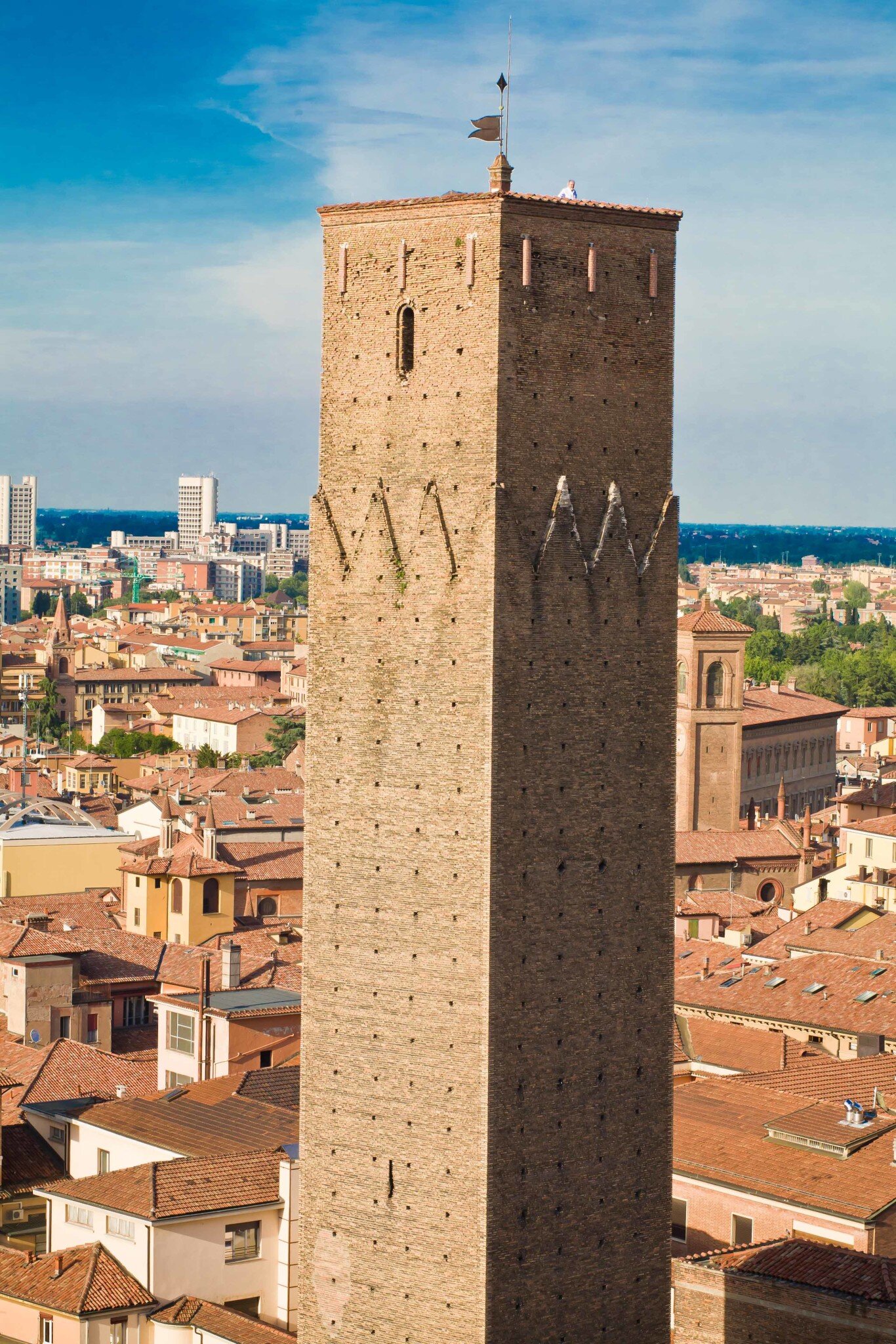 Historical Background: Located in the very heart of the historical centre of Bologna, this ancient tower has resumed its’ rightful place as a landmark. It has a fascinating history, which you will learn at first hand when you visit; originally the stronghold of the Prendiparte family (Nobles of the city of Bologna) in the 13th century, the tower has had several owners and was even used as a prison during the late 18th century. It is 65 meters high, and composed of a series of rooms, or floors, linked by staircases leading ever upward to the terrace on the top level, offering panoramic views over the city of Bologna.