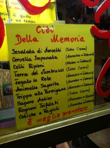 If you are into meat at the butcher shop Macelleria Ghioldi you will find a way to stuff your belly with cibi della memoria, of food of the memory. In other words these are forgotten dishes that the owner wanted to bring back to the present days. Like cervella impanate (breaded brains) or trippa alla parmigiana (Parma style tripes), or cotiche e fagioli (pigs skin and beans)