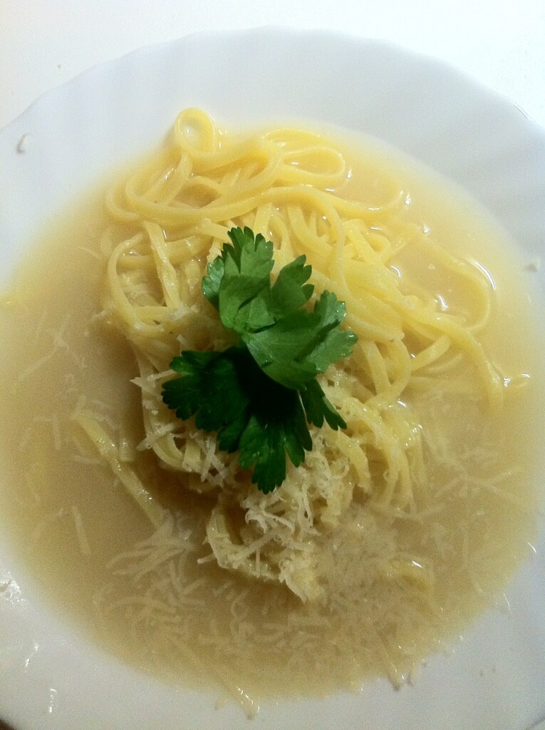 Tagliolini in brodo, Italian style noodles in chicken stock.