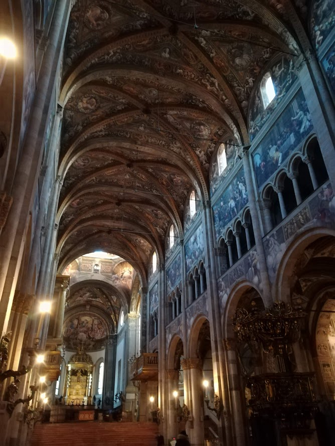 One of the city’s most important landmarks is the 12th-century Duomo (Cathedral), celebrated for its Romanesque structure and luminous frescoes by Antonio da Correggio. Adjacent to the cathedral stands the Baptistery, a masterpiece of transitional Romanesque-Gothic architecture clad in pink Verona marble and decorated with some of the most significant medieval sculptural cycles in northern Italy.