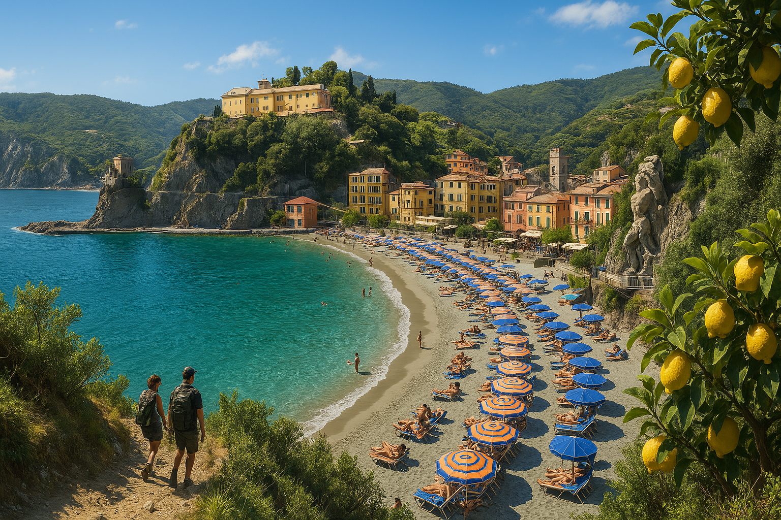 Monterosso al Mare is the largest of the five Cinque Terre villages and the only one with a substantial stretch of sandy beach (Monterosso al Mare – Wikipedia). Split between a picturesque historic center and a modern resort area, Monterosso offers a blend of old-world Ligurian charm and relaxed Riviera vibe. Colorful houses and lemon trees dot the hillsides , and the waterfront promenade buzzes with beachgoers, gelato stands, and fishing boats bobbing in the bay. Despite being more developed than its neighbors, Monterosso retains a laid-back dolce far niente atmosphere – perfect for sunning on the sand by day and enjoying wine on a seaside terrace by night (CinqueTerre-travel.com – Monterosso). This Lonely Planet–style guide will delve into Monterosso’s history, landmarks, activities, hikes, cuisine, transport, and cultural life, giving you practical tips and local insight for 2024–2025.