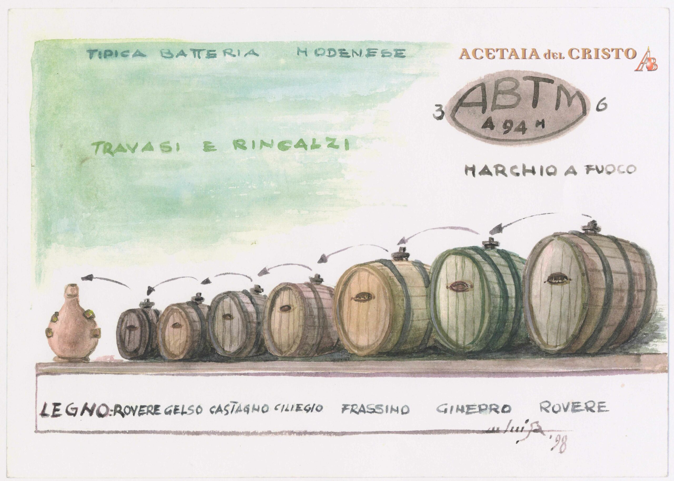 - Third Operation: The frassino barrel is then topped up from the “CILIEGIO” (cherry, 40 liters) barrel.